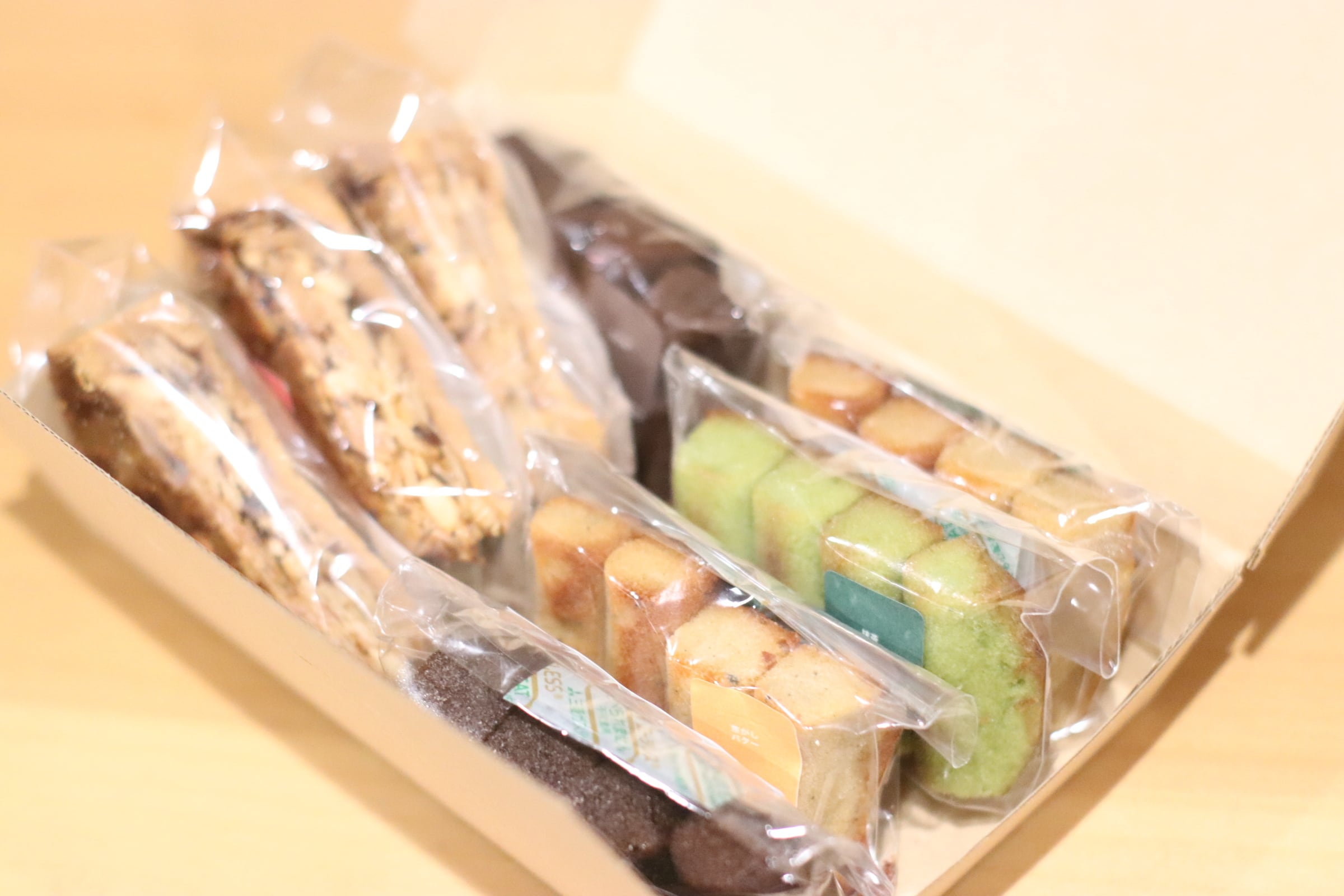 箱いっぱいに詰めた定番おやつ。
